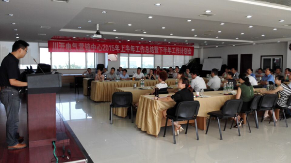 此次會議參會的主要領導有川開集團副董事長袁會云,川開電氣總經理李軍,電氣口管委會成員,以及營銷中心各部門負責人、區域、行業總監等。本次會議主要以數據展示上半年工作開展成果以及下半年工作支撐,充分體現結果導向的營銷特征。