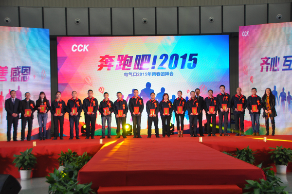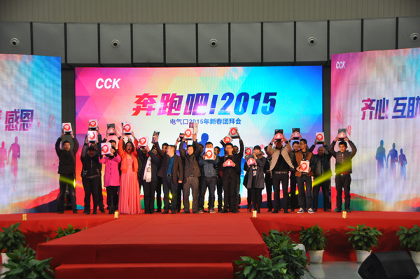 最后,由川開集團(tuán)公司領(lǐng)導(dǎo)及電氣口管委會成員一起舉杯,讓我們告別2014,向2015努力奔跑。