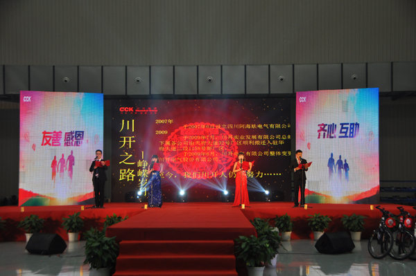 其中“最給力川開人”的評選和“愛心基金捐贈”儀式都把我們的年會推向了高潮。在這兩個環(huán)節(jié)中,我們體會到了“給力川開人”一代傳一代的“給力”精神;也感受到了我們川開人的愛心和責(zé)任;我們愿意肩負(fù)社會責(zé)任,為貧困兒童的家庭托起明天的太陽。