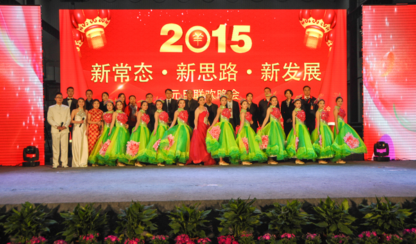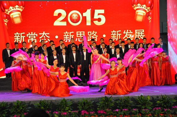 文藝演出正式開始前,集團董事局簡興福主席宣布了集團2015年新一屆管委會成員構成,11位管委會成員實現了老中青三結合。集團公司王洪總裁代表集團領導班子致新年賀詞,肯定了2014年全體員工為公司發展做出的貢獻,并鼓勵全體員工2015年堅定信念、再創輝煌,向全體員工及家屬致以親切的問候和誠摯的祝福;集團董事局簡興福主席為30年、20年工齡員工頒發證書和紀念品。