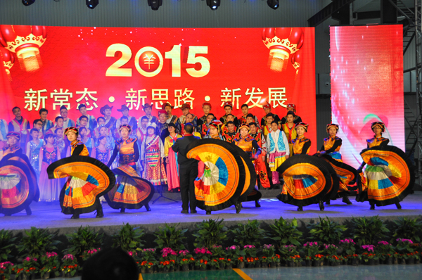 “駿馬辭歲回首歷程上下齊心笑迎挑戰,瑞羊迎春展望前景攻堅克難再創佳績”,12月30日下午2點,以“新常態新思路 新發展”為主題的2015年迎新春慶元旦文藝演出聯歡活動在公司精彩舉行。全集團干部職工一千余人歡聚一堂,一起分享由集團黨委、集團工會、集團公司精心組織籌備、各公司傾力奉獻的文化盛宴。川開人載歌載舞喜迎2015年新年的到來。縣總工會領導、協和街道工會領導應邀出席,現場感受了工會組織對川開企業文化建設的付出取得的成果。