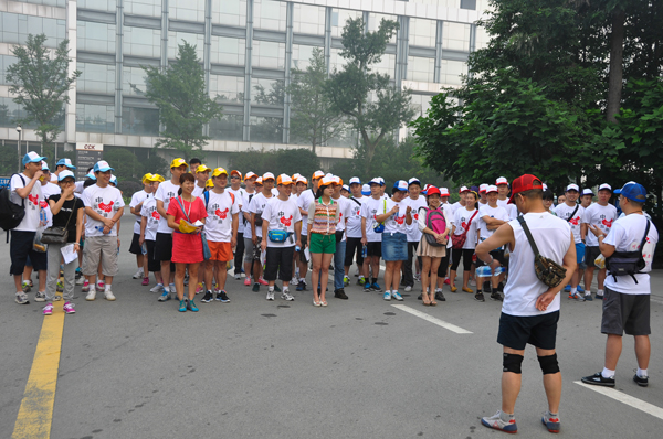2014年8月2日上午6點50左右,活動正式啟幕。培訓班各小組學員近70人在園區集合,集團總裁王洪交代了活動注意事項后,大家沖出起跑線,開始了15km的戶外行走。