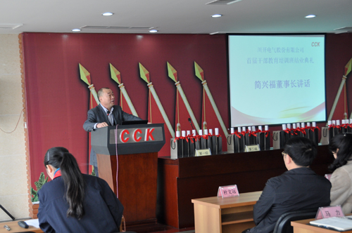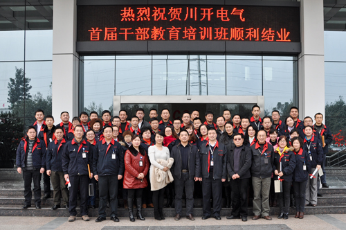 2013年2月2日下午1點,川開電氣首屆干部教育培訓班結業典禮在公司六樓會議室隆重舉行,集團董事局主席簡興福、總裁王洪、副總裁李懷玉、杜文遠、張瓊、簡曉琴、袁會云以及川開電氣首屆干部教育培訓班全體師生參加了此次結業典禮。