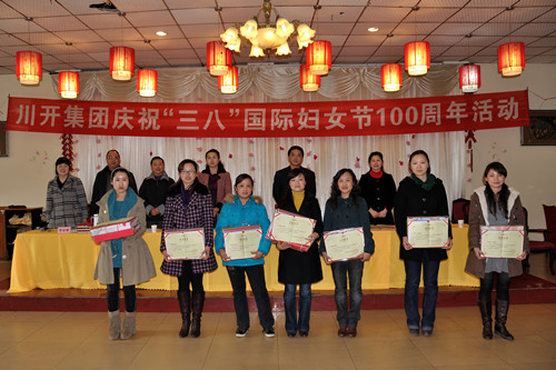 ??? 會議首先由簡興福董事長首先向全體女員工們表示節日祝福,充分肯定了女員工們為企業發展做出的努力和貢獻并提出新的希望。女工委員會主任趙玲作專題發言激勵全體女員工要自立、自信、自強,充分發揮“半邊天”的作用。李會春副主任作《2009年度集團公司婦女工作總結》。我公司陶厚珍等15名女員工榮獲“川開集團2009年度女標兵”稱號并受到表彰,集團總裁王洪先生號召全體女員工以標兵和先進為楷模,愛崗敬業,為公司發展做出新的更大貢獻。