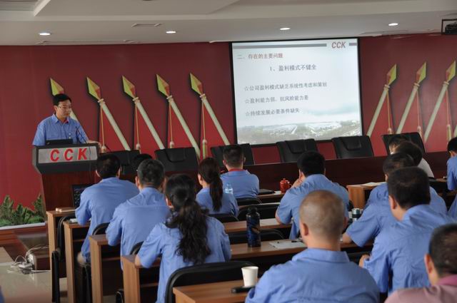 ??? 集團總裁王洪首先肯定了我公司上半年取得的成績,接著利用有關數據圖表為與會人員生動、直觀的分析了我公司存在的具體問題,并希望我們從問題管理、全局觀念、創新、數據管理等六大方面著手對工作進行改進,確保目標任務的順利完成。