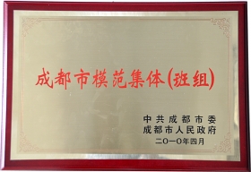 ??? 2010年4月18日,中共成都市委、成都市人民政府表彰勞動模范、模范單位、模范集體(班組)會議在成都金牛賓館大禮堂隆重召開,我公司核電產品開發工作小組被評為成都市模范集體(班組),在會上受到表彰。