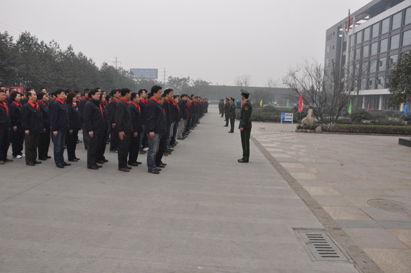 ??? 為讓全體員工充分體會公司企業文化理念,培養員工吃苦耐勞精神,加強組織紀律性和團隊合作精神,增強員工對公司的忠誠度和歸屬感和集體凝聚力,川開電氣股份有限公司特邀請成都武警指揮學院的優秀教官,組織所有員工進行軍訓。集團總裁王洪先生、公司總經理李軍先生在開幕式上作軍訓動員。