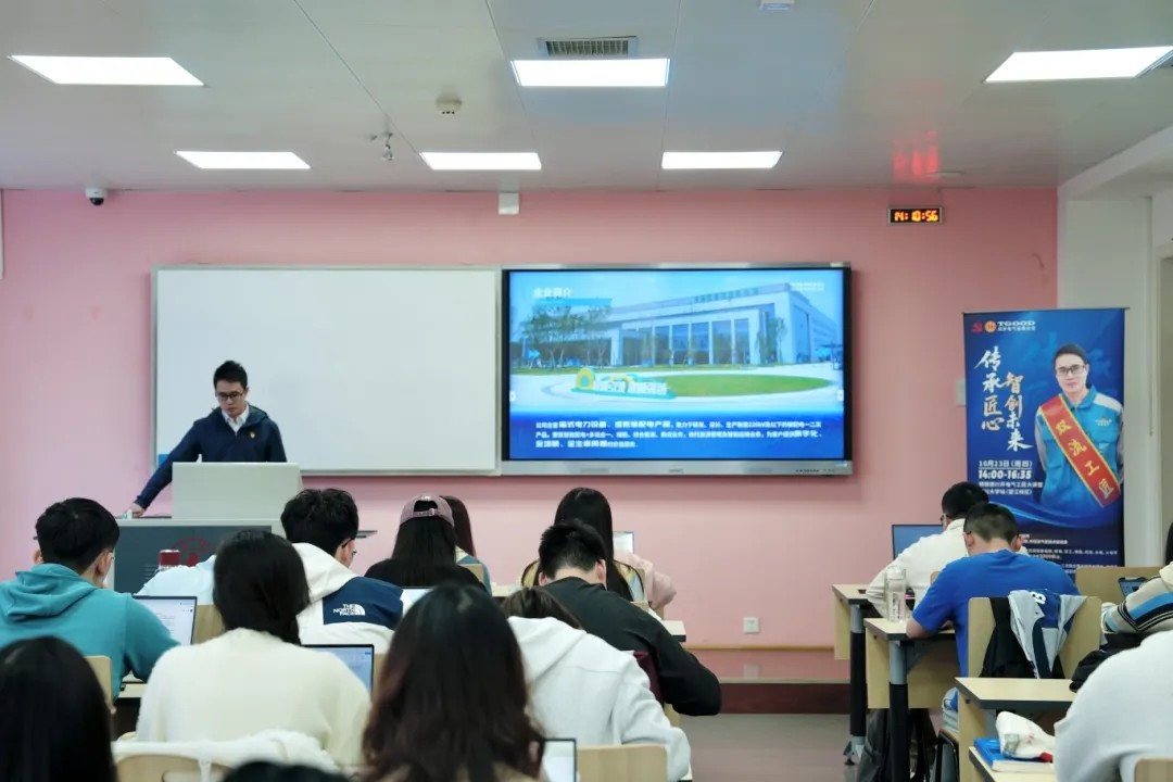 本次大講堂內容豐富,體系嚴謹,為在場學子系統性地勾勒出一幅從理論根基到產業實踐的宏偉全景。工匠講師首先從公司的深厚底蘊切入,通過對特銳德川開電氣基本情況、波瀾壯闊的發展歷程、前瞻務實的業務布局以及獨特企業文化的介紹,生動展現了輸配電裝備制造領軍者的形象。